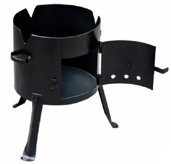 В данной печи в 3-и несъемные, приваренные опоры (ножки), дверца, покрытии печи сделано из термостойкой эмали, качество обработки на высочайшем уровне. Вы не найдете заусениц, острых, не зашлифованных кромок на данной печи. Ножки обеспечивают великолепную устойчивость. Данная печь идеально подойдет для использования на даче, а благодаря разборному функционалу, поместиться даже в небольшой багажник легкового автомобиля и Вы сможете удивить блюдами в казане гостей не только дома, но и на природе.