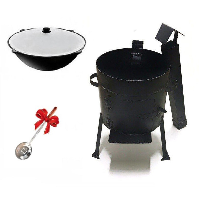Набор печь для казана с трубой "Мастер" и казан на 16л (шумовка и половник в подарок)