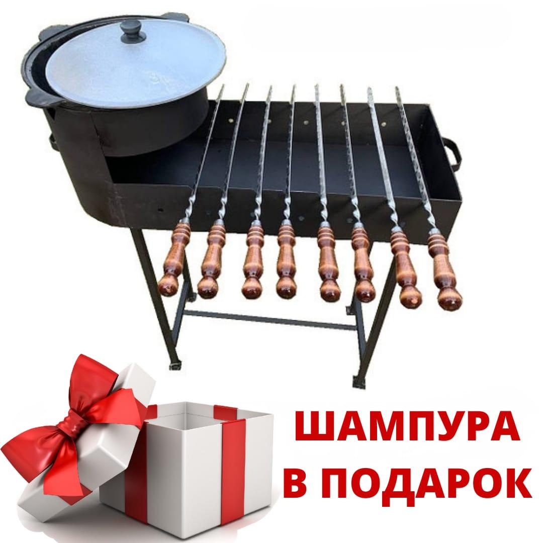 Мангал с печью и узбекский казан на 8 литров (86х32х70+13)+набор шампуров в ПОДАРОК